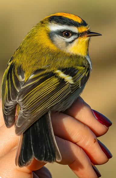 Anillamiento de un reyezuelo listado, el ave más pequeña de Europa. 18-10-2025